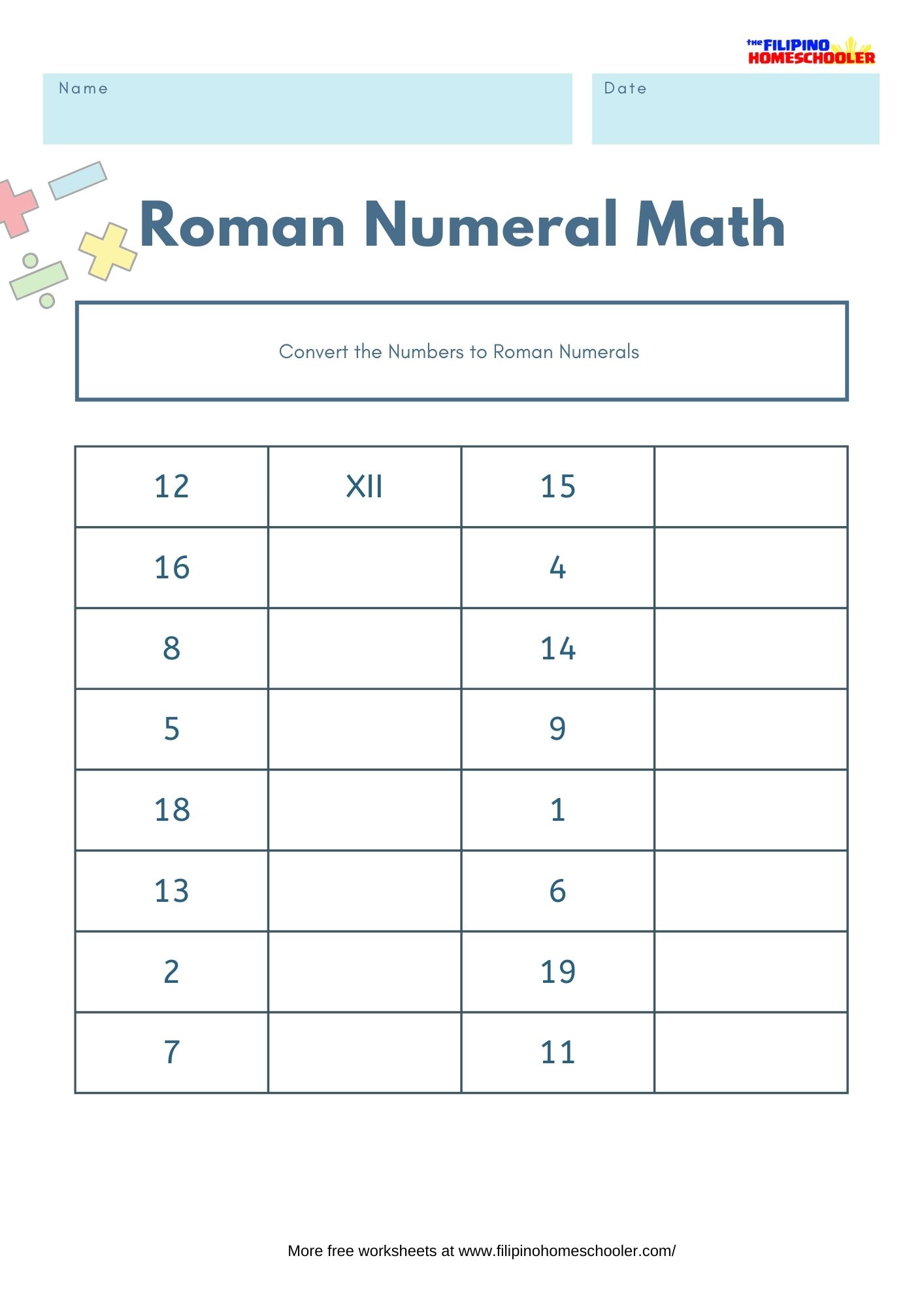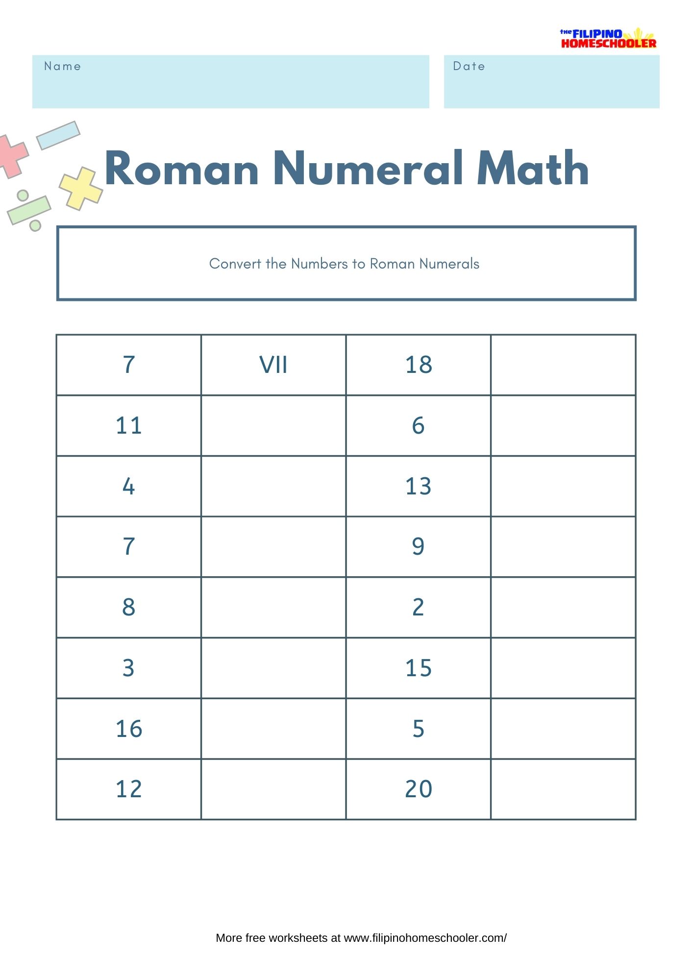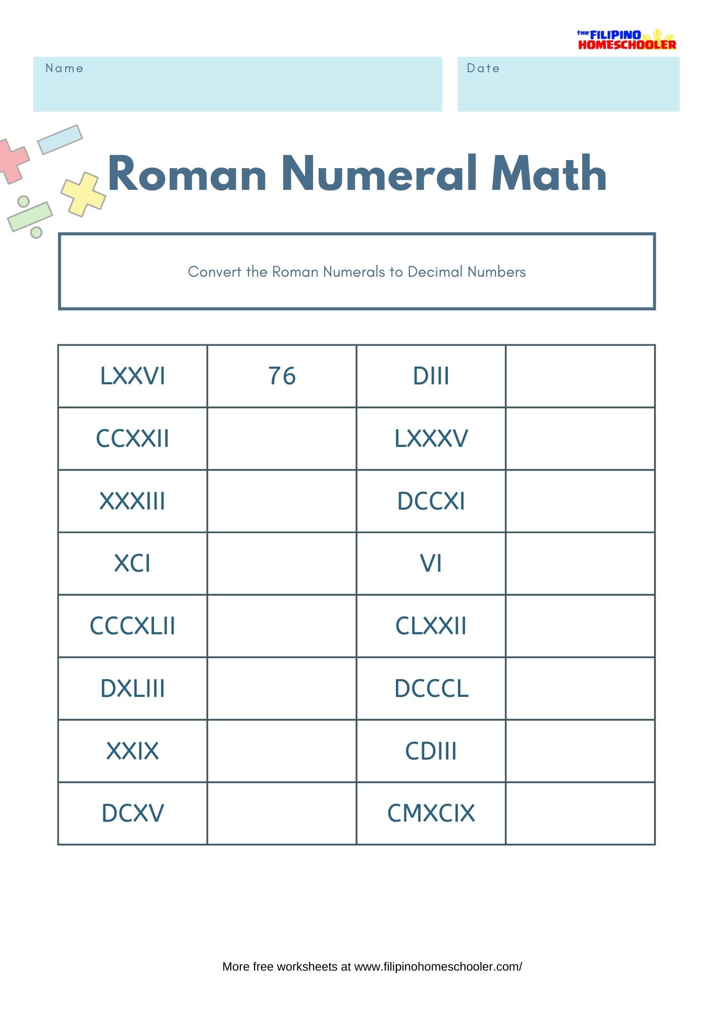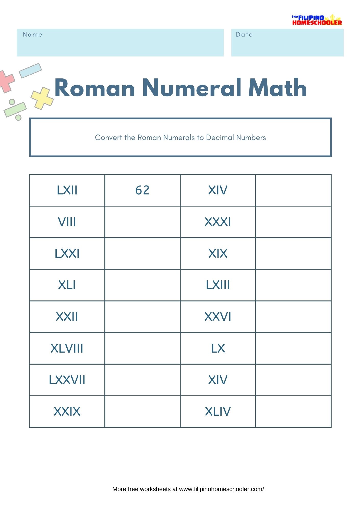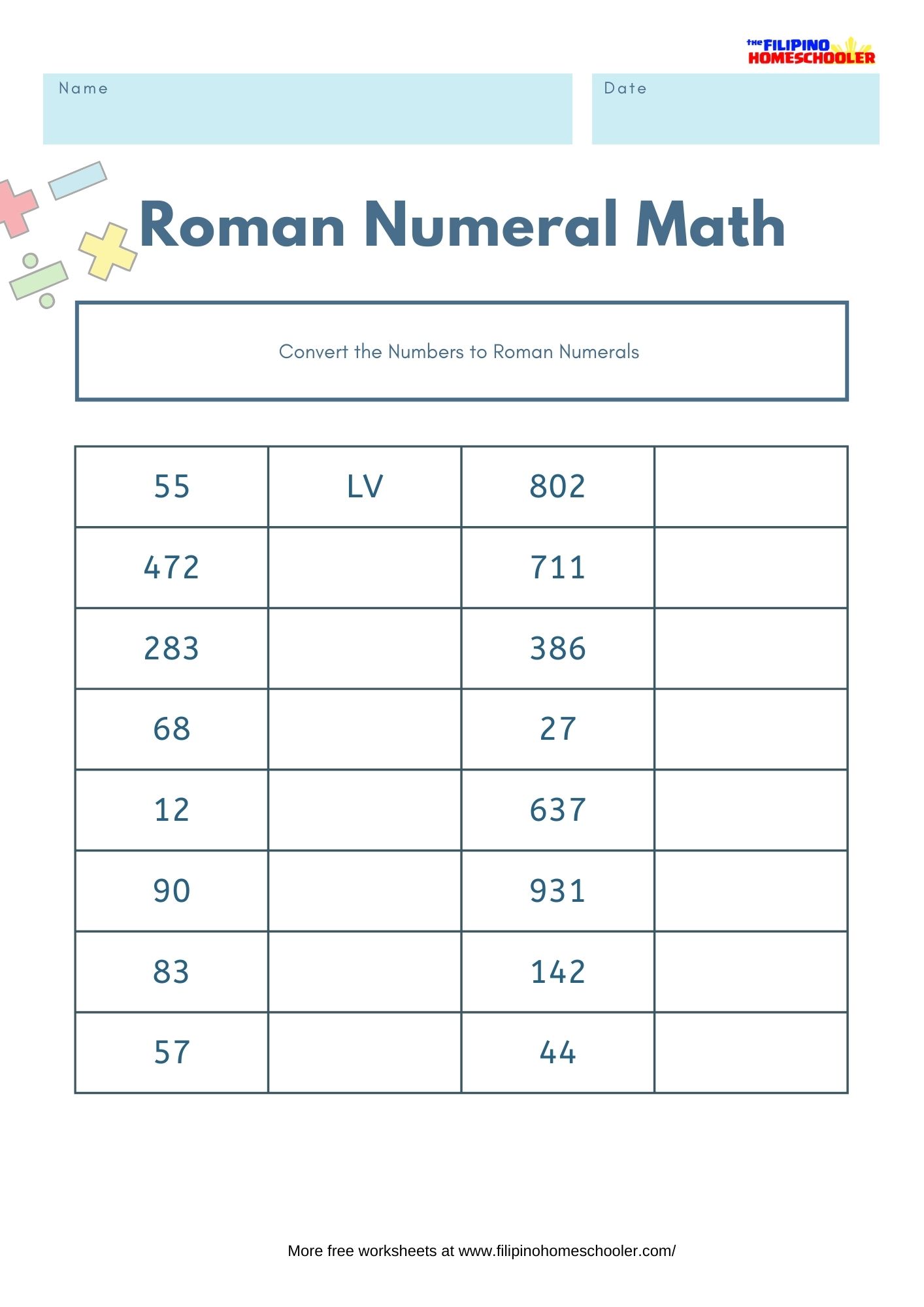 - Visit our Roman Numerals Page for lessons, tips and free worksheets to download.